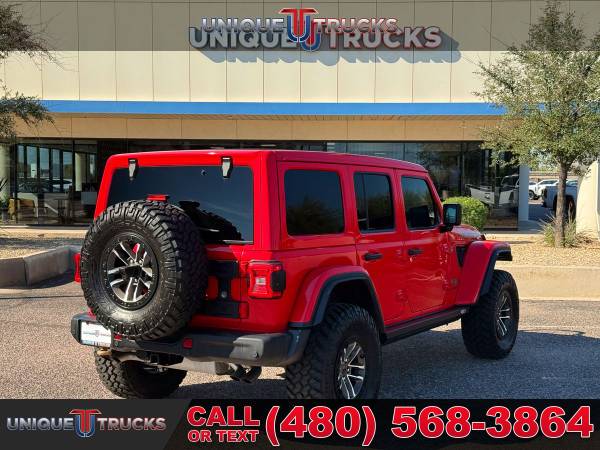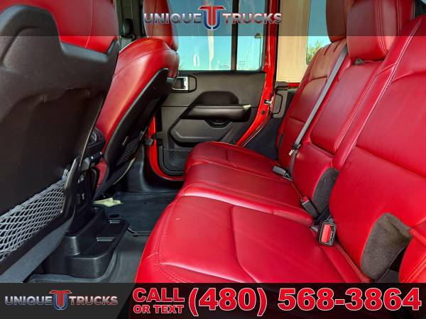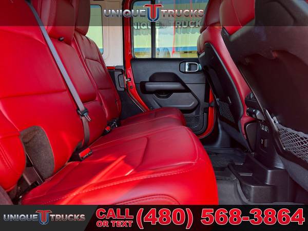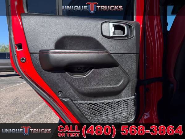INSTALLED FEATURES: Air filtration, Front air conditioning: automatic climate control, Front air conditioning zones: dual, Rear vents: second row, Airbag deactivation: occupant sensing passenger, Front airbags: dual, Side airbags: front, Side curtain airbags: front / rear, Antenna type: diversity / element, Auxiliary audio input: Bluetooth / iPod/iPhone / jack / USB, Premium brand: Alpine, Radio: AM/FM / HD radio / touch screen display / voice operated, Radio data system, Satellite radio: SiriusXM, Speed sensitive volume control, Subwoofer: 1, Total speakers: 8, Watts: 552, ABS: 4-wheel, Braking assist, Electronic brakeforce distribution, Emergency braking preparation, Front brake type: ventilated disc, Power brakes, Rear brake type: ventilated disc, Cargo area floor mat: rubber/vinyl, Floor mat material: carpet, Floor material: cargo area carpet / carpet, Floor mats: front / rear, Heated steering wheel, Interior accents: metallic-tone, Parking brake trim: leather, Shift knob trim: leather, Steering wheel trim: leatherette, Adaptive cruise control, Adaptive stop and go cruise control: semi-automatic, Ambient lighting, Assist handle: front, Cargo area light, Center console: front console with armrest and storage / locking, Courtesy lights: door, Cupholders: front / illuminated, Footwell lights, Multi-function remote: panic alarm / proximity entry system, One-touch windows: 2, Power outlet(s): 115V rear / 12V cargo area / 12V front / USB front / USB rear / USB-C front / USB-C rear, Power steering: variable/speed-proportional, Power windows: lockout button, Push-button start, Reading lights: front / rear, Rearview mirror: auto-dimming, Remote engine start, Steering wheel: tilt and telescopic, Steering wheel mounted controls: audio / cruise control / multi-function / paddle shifter / phone / voice control, Storage: bin / cargo tie-down anchors and hooks / door pockets / front seatback, Tool kit, Universal remote transmitter: Homelink - garage door opener, Vanity mirrors: dual illuminating, Door handle color: black, Fender lip moldings: body-color, Front bumper color: black, Grille color: black, Hood scoop, Mirror color: black, Rear bumper color: black, Rear trunk/liftgate: side-hinged, Running board color: black, Running boards, Skid plate(s): front / rear, Window trim: black, Connected in-car apps: Google POIs / Google search, Infotainment: Uconnect, Infotainment screen size: 12.3 in., Smartphone integration: wireless Android Auto / wireless Apple CarPlay, Clock, Compass, Customizable instrument cluster, Digital odometer, External temperature display, Fuel economy display: MPG / range, Gauge: tachometer, Instrument cluster screen size: 7 in., Multi-function display, Trip odometer, Warnings and reminders: coolant temperature warning / lamp failure / low fuel level / low oil pressure, Daytime running lights: LED, Exterior entry lights: approach lamps, Front fog lights: LED, Headlights: auto delay off / auto high beam dimmer / auto on/off / LED, Taillights: LED, Side mirror adjustments: manual folding / power, Side mirrors: heated, 4WD selector: manual hi-lo, 4WD type: part time w/ on demand setting, Alternator: 220 amps, Auxiliary oil cooler, Battery: maintenance-free, Battery rating: 700 CCA, Battery saver, Cylinder deactivation, Drive mode selector, Emissions: federal, Locking differential: front / rear, Removable roof: hard top, Automatic emergency braking: front, Blind spot safety: sensor/alert, Camera system: rearview, Check rear seat reminder, Child safety door locks, Child seat anchors: LATCH system, Cross traffic alert: rear, Crumple zones: front / rear, Parking sensors: rear, Pre-collision warning system: audible warning / visual warning, Rearview monitor: in dash, Emergency locking retractors: front / rear, Front seatbelts: 3-point, Rear seatbelts: 3-point, Seatbelt force limiters: front / rear, Seatbelt pretensioners: front / rear, Seatbelt warning sensor: front, Driver seat: heated, Driver seat power adjustments: 12 / height / lumbar / reclining, Front headrests: 2 / adjustable, Front seat type: bucket, Passenger seat: heated, Passenger seat power adjustments: 12 / height / lumbar / reclining, Rear headrests: 3 / foldable, Rear seat folding: split, Rear seat type: 60-40 split bench, Upholstery: leather-trimmed, Anti-theft system: alarm / vehicle immobilizer, Power door locks: anti-lockout / auto-locking, Hill holder control, Off-road driving assist: hill ascent / hill descent, Roll stability control, Stability control, Traction control, Trailer stability control, Front shock type: monotube, Front spring type: coil, Front stabilizer bar: electronic disconnecting, Front suspension classification: solid live axle, Front suspension type: multi-link, Rear shock type: monotube, Rear spring type: coil, Rear stabilizer bar, Rear suspension classification: solid live axle, Rear suspension type: trailing arms, Tuned suspension: off-road, Driver assistance app: roadside assistance, Electronic messaging assistance: voice operated / with read function, Hands-free phone call integration: voice operated, Navigation data: real time traffic, Navigation system: hard drive / touch screen display / voice operated, Smart device app compatibility: SiriusXM Guardian, Smart device app function: engine start / horn/light operation / lock operation / vehicle location, Wi-Fi: hotspot, Wireless data link: Bluetooth, Tow hooks: front / rear, Trailer hitch: Class II, Trailer wiring: 4-pin / 7-pin, Upfitter switches, Spare tire mount location: outside, Spare tire size: full-size matching, Spare wheel type: aluminum alloy, Tire Pressure Monitoring System, Wheels: painted aluminum alloy, Front wipers: variable intermittent, Laminated glass: acoustic windshield, Liftgate window: manual flip-up, Power windows: safety reverse, Rear wiper: intermittent / with washer, Solar-tinted glass: front / rear, Tinted glass: windshield, Window defogger: rear