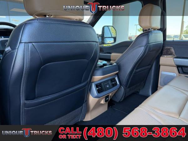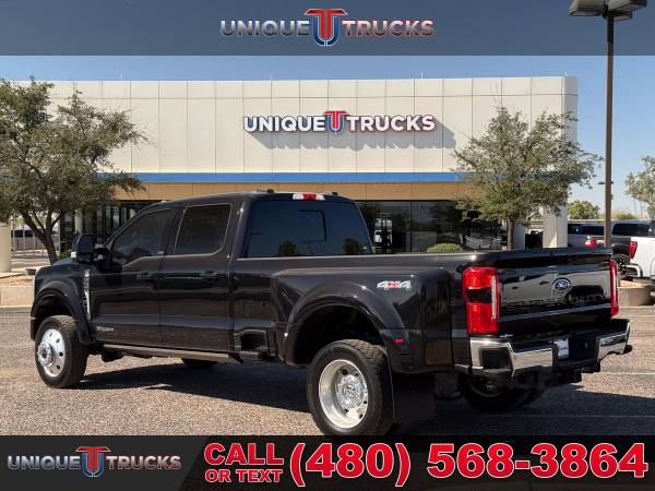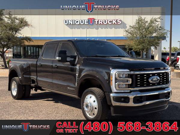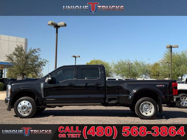 If you’ve been searching for a hard-to-find heavy-duty truck that truly stands out, this 2025 Ford F-450 Super Duty Lariat Crew Cab Dually 4x4 is the one to see. Finished in Agate Black with bright chrome accents, this truck has a bold, clean look that grabs attention from every angle. It’s one of the nicest and cleanest examples on the market—built for strength, comfort, and real work.Under the hood, this Lariat runs the legendary 6.7-liter Power Stroke V8 turbocharged diesel engine paired with a smooth 10-speed automatic transmission. This setup delivers all the power and torque needed for towing, hauling, and tackling any job with ease. Whether you’re pulling a fifth wheel, hauling gear, or heading cross-country, this truck is always ready to go.The exterior showcases Ford’s practical design and strong appearance. LED reflector headlamps, LED fog lamps, and auto high beams light your path clearly, while rain-sensing wipers adjust automatically to the weather. The PowerScope trailer tow mirrors fold, extend, and heat up for perfect visibility. With tow hooks, a trailer brake controller, and trailer sway control, this truck gives you confidence while towing heavy loads.The bed is designed for real work and convenience. It features a spray-in Tough Bed liner, tie-down hooks, a power tailgate lock, and front wheel well liners for protection. A tailgate step makes loading and unloading easier, and the power sliding rear window with privacy glass and defrost adds a nice touch of comfort and function.Step inside to find the Baja ActiveX leather interior that offers comfort for every drive. The driver and passenger enjoy heated and ventilated power seats, while the heated leather steering wheel and dual-zone electronic climate control keep everyone comfortable in any season. The power-adjustable pedals with memory, one-touch windows, and 12-inch productivity screen make every drive simple and enjoyable.Technology is front and center in this F-450. It’s equipped with Ford’s SYNC 4 system and a large 12-inch touchscreen, giving you easy access to navigation, entertainment, and connectivity. The premium B&O sound system delivers clear, deep sound throughout the cabin, while FordPass Connect with 5G Wi-Fi keeps you connected on the move. You’ll also enjoy connected navigation with a one-year trial, SiriusXM with 360L, and a helpful reverse sensing system.Safety comes built-in with Ford’s most trusted systems. This truck includes AdvanceTrac with Roll Stability Control, Pre-Collision Assist with Automatic Emergency Braking, Blind Spot Information System with Cross-Traffic Alert, and a full 360-degree camera setup. It also comes with Safety Canopy airbags, a Belt-Minder system, and the SOS Post-Crash Alert feature for extra peace of mind.The Lariat Ultimate Package adds even more convenience, including power running boards, a power sliding rear window, and a tailgate step. This F-450 also includes a 410-amp dual alternator, rapid heat supplemental heater, and the 14,000-pound GVWR package—ready for any work or travel demands you throw its way.Everything about this truck is built to make your life easier. From the electrochromic mirror that cuts glare to the remote keyless entry system, it’s made for comfort and performance. Fully serviced and ready for its next owner, this 2025 Ford F-450 Lariat Dually is the perfect mix of power and luxury.At Unique Trucks, the price you see is the price you pay—no hidden markups or addendums, ever. We also offer our No Obligation Delivery service, where your truck can be delivered right to your doorstep. You can test drive it from the comfort of your own home, make your best deal over the phone, and if you don’t like it, you don’t buy it. We love trade-ins and encourage you to come in and check out our amazing selection of clean, lifted, and hard-to-find trucks. ________________________________________________________ 2025* 2024* FORD* F-450*F450* F 450* SUPERDUTY* LARIAT* CREW* CREW CAB* LARIAT EDITION* 4X4* DIESEL TRUCKS* POWERSTROKE* TURBOCHARGED* DIESEL* ENGINE* LOW MILES* LOW MILEAGE* RELIABLE* ONLY* DUALLY* DUAL REAR WHEEL* DRW* DIESEL TRUCKS* TOWING* RELIABLE* ONLY*