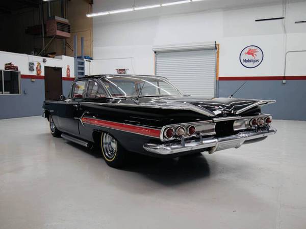 This 1960 Chevrolet Impala Bubble Top is a true icon of early ’60s muscle and design. Under the hood is a 348 CI V-8 engine with dual 4-barrel carburetors, paired with a 4-speed manual transmission and a 3.70 Positraction rear differential, delivering the kind of performance that defined a generation.