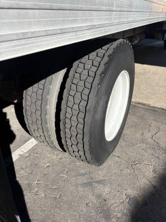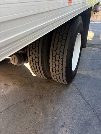 The truck has a dry van box in very nice shape and a Maxon hydraulic liftgate on the back, great for pallets and heavy product. Roll-up rear door, good tires all around, and the body is straight with no major damage.