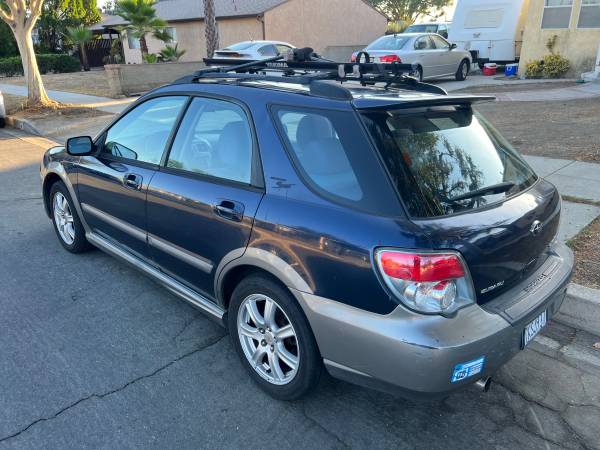 2006 Subaru Impreza outback sport. 4cyl automatic AWD with only 131k miles . Car holds a clean title with current registration. Interior is pretty clean no major rips or tears in seats. Exterior is ok paint is faded in certain spots. Scrap on passenger side but no major accidents. All original body panels doors and glass. A/C and heat work great. All electrical works great. New ASIN water pump, timing belt, and tensioner kit. New Denzo radiator, thermostat, coolant and hoses. New power steering pump, fluid and hoses. Fresh oil change and filter. Tires and brakes are good as well. New 02 sensor and passed smog with flying colors. Car has minor cosmetic damage but is super reliable and great on gas. Comes with Yakima bike rack. No rust, California car.