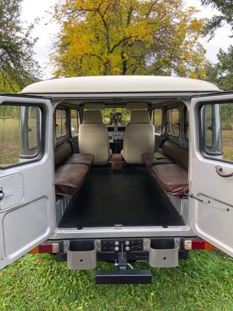 Since the restoration it has driven 16,500 miles. This Troopy made a trip around the country in 2012 and for the past 13 years has been garaged. Serviced once a year during that period. Engine is rust free except for the exhaust manifold. Minimal rust underneath, rear shocks show surface rust. During the 13 years that the Troopy was garaged it was occasionally taken out for short trips of a few miles on dry days. The Troopy has never been driven on salty winter roads.