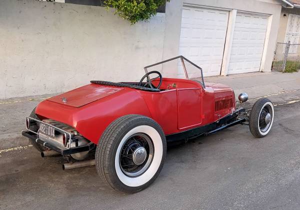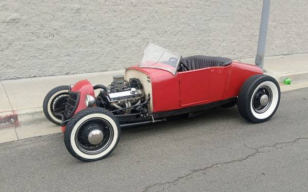 All steel 1926 Ford body on a Model A chassis, the reliable Chevy 305 V8 engine is plenty of power for this light hot rod. Poweglide automatic transmission, and banjo rear end with 16" early Ford rims and new radial white walls all around. It has a 32 Ford center folding hood that's easily removed for an open engine look. It does have seatbelts tucked between the cushions. Quiet dual exhaust and an ahooga horn. Comfortable ride and a crowd pleaser. Clean 1926 Ford title in hand, registration up to date.