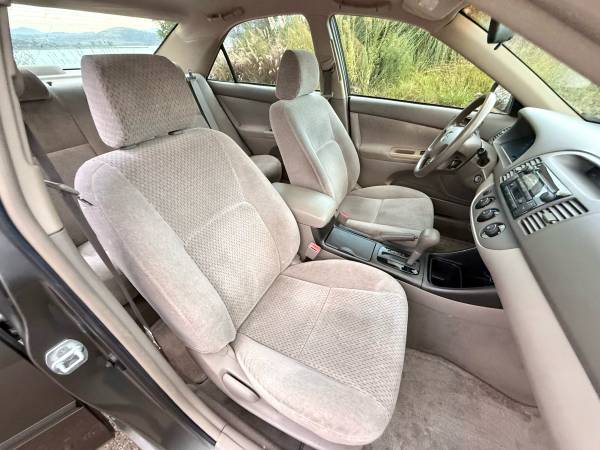 2002 Toyota Camry up for sale. It’s been very reliable for us. Strong 2.4L 4-cylinder engine with smooth automatic transmission. Gets about 31 mpg. Cold A/C and a clean interior.