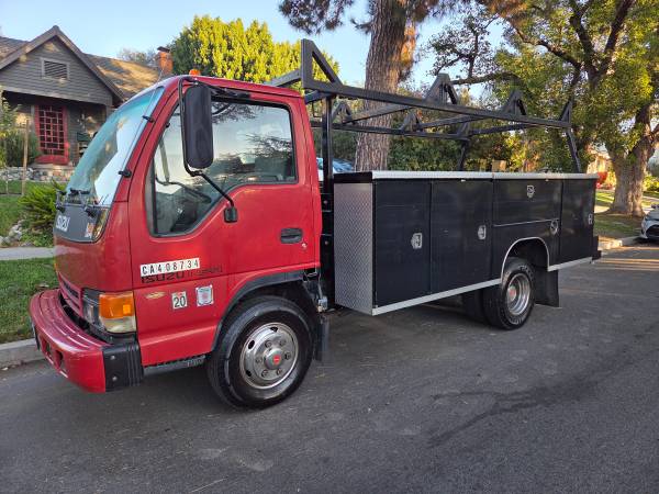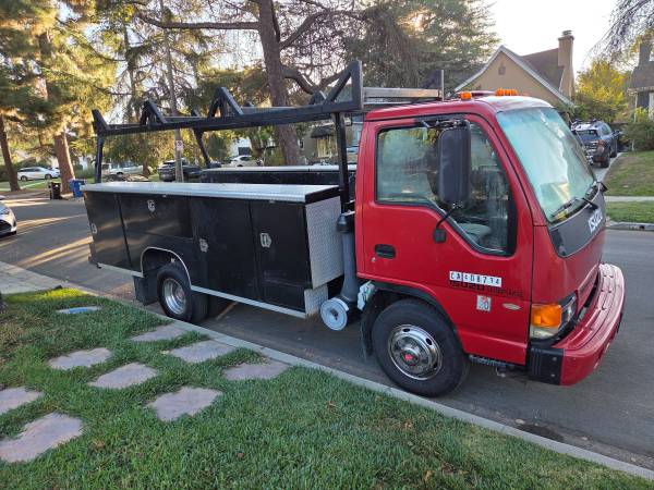 2005 Isuzu NPR Gas Engine. Solid working order. 149,000 miles. Second Owner (since 2010). Tires, brakes are good low mileage since last replacement. 10,000 lbs tow package with electronic brake. All boxes close and lock. Lift up tops stay open.