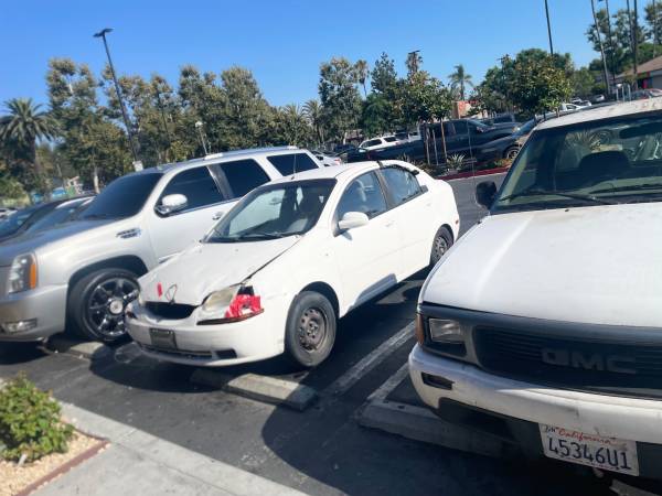 I have a white Chevy Aveo. It has auction paper work and owes money. It does not have a clean title. The title is suspended but it can be registered if you straighten things up with DMV and let them know you are a new owner. It does have auction papers. But other than that. I have really drove it to Arizona I slept in it for 5 days with no car starting issues. It does not over heat. I have drove it to the deserve. It’s good going up steep hills. It drives fast. It’s very reliable and dependable. It has one good key. It always starts up. It never will never die on you. It doesn’t over heat. It has a brand new 300 auto zone battery. Not a cheep battery. The battery is brand new I already used out it’s battery warnety. This is the second one from auto zone. But since I used the warenty it hasn’t failed. The trunk is broken and needs to be tied down or the battery can die. It’s tied down good right now. So it won’t die. The front hood is broken but it locked with a lock. Besides the trunk and hood being broken.there is a lot of trunk space. And battery is good. The ac doesn’t work. The heater works good and warms up good. It’s good on gas and only takes 30$ to 400 miles. You can drive this car almost anywhere. Without stopping. If you know how to drive like me. Besides it not being registered. You can put car insurance on it. I had it previous insured by AAA with road side assistance. And they helped me with the car alot. All windows and doors locks and aren’t broken. There’s no cracks in the windows. And car is all locked up. It doesn’t have a car alarm. But it’s all locked up inside and out and you can’t break into it the windows are very strong. The tires are all aired up and strong for any storm. This car DOES NOT OVER HEAT. IT HAS NO transmission problem or engine problems. Only problem is the front lights need to be switched out which cost probably 20$ but turn signals work and break lights work. I wouldn’t recommend driving at night on freeway. Without changing lights. This car is a very good car. That’s why I’m selling for 900$ because it has gotten me through a lot. I mean a lot. I’ve had to live in this car. It doesn’t smell like weed or cats or dogs. It has no drug smells or funky orders. I don’t use drugs or drink. This car was not owned by a drug attic. The smell is safe and has no foul orders. I kept it very clean and took it to the car wash many times. I have lived in it and tested it out. It can drive far with just 30$ of gas. Giving me 900$ would be ripping me off if I sell this car to someone who can’t take care of it or doesn’t just park it and hide it due to that it’s suspended. But if you do drive it get insurance. Because you can drive it anywhere even to the store and back or to do door dash or grub hub or to do any errends. This car do not over heat. Basically meaning it can drive anywhere. I have drove this car to work and back. I drove it to San Diego to Arizona colarodo river Route 66 and back blyth and Santa Paula. It can drive you anywhere pretty much anywhere. And it’s real cozy to sleep in too.