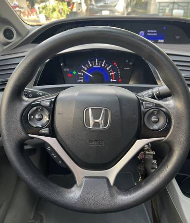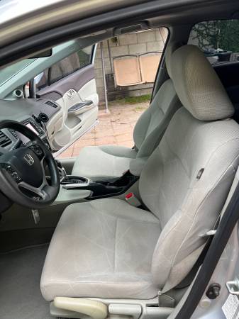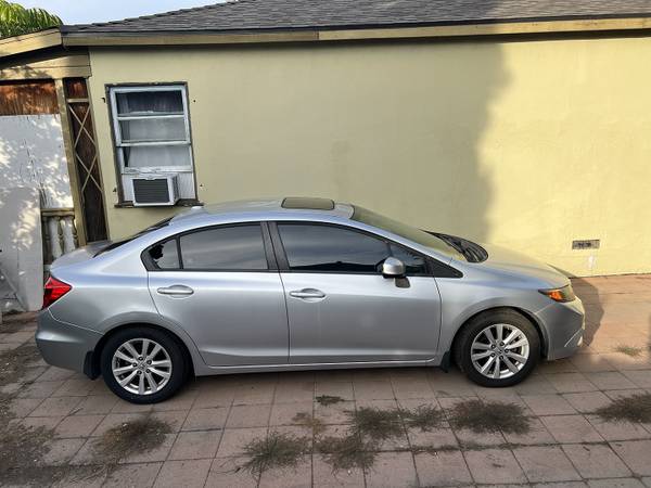 Used Honda Civic EX 2012 for sale. In great condition. Gas saver with Econ mode. I have taken very good care of this car and love it. The reason I am selling is because of my growing family. It's perfect for a college student. The sound system is awesome. The windows are tinted, but the back one needs some attention. The car is in great condition with minor dents, scratches, and minor sun damage to the roof.