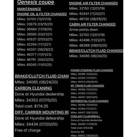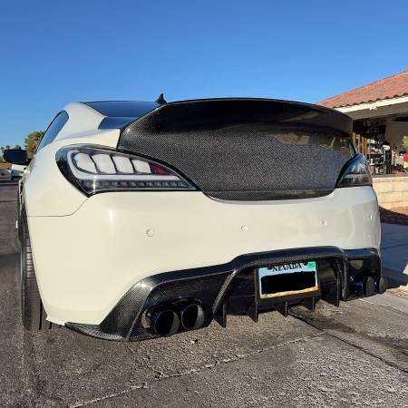 For sale is a very clean 2015 Genesis Coupe Ultimate 3.8L 6MT 49k original miles. 348hp/295torque. Engine is untouched completely stock for reliability. Brembo Brakes, LSD, Sun Roof, Has 2 sets of Seats. 2 sets of 19 inch wheels/tires, black wheels & TE37 Ultra M Spec. $24k All in or $19k without the TE37s. A lot of parts are not mentioned, the list of parts and maintenance list will be given to the new owner. But to give you an idea, the Carbon Fiber parts and wheels & tires alone cost more than $10k+shipping and taxes+the long wait from Japan. KBB valued the car bone stock at $15772. I’m not giving away $10k+ worth of mods for free. I’ve kept this car in pristine condition. Always garage kept. Very well maintained. Recent fluids and filters changes. Maintenance has all been done, Car needs nothing, all you have to do is drive the car. 2 months old wrap in Super Gloss Pale Nardo Grey. It has a rebuilt title, Rear ended and professionally fixed. Mechanically Excellent as a low mileage Genesis. Great AC/Heater. None Smoker, Pet free very clean interior. I’ve owned this car for 6 years and I have the title in hand. This is a private party sale, no tax or fees. You pay exactly what we agree on. Contact me at (SEVEN ZERO TWO FOUR TWO EIGHT EIGHT FOUR EIGHT ONE). Text me if i don’t answer. DO NOT EMAIL ME. Thank You
