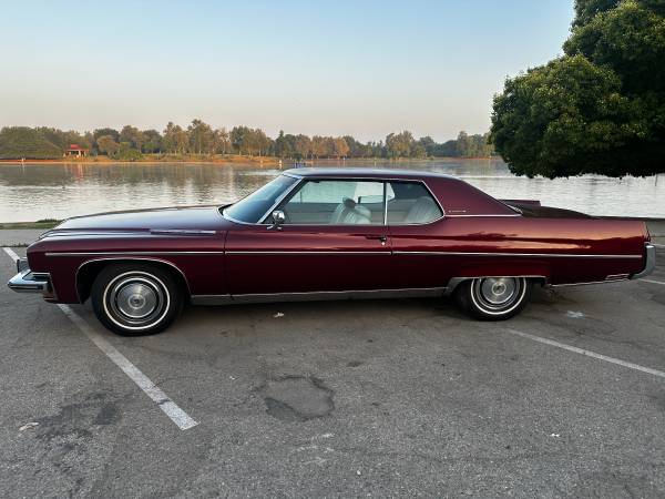 This restored 1973 Buick Electra 225 coupe is powered by a 455 four-barrel V8 mated to a three-speed Turbo Hydra-matic 400 automatic transmission. Finished in a Jaguar paint color known as Opalescent Maroon over a white vinyl interior, this Buick is now offered by a private seller with the original owner's manual and a clear title.
