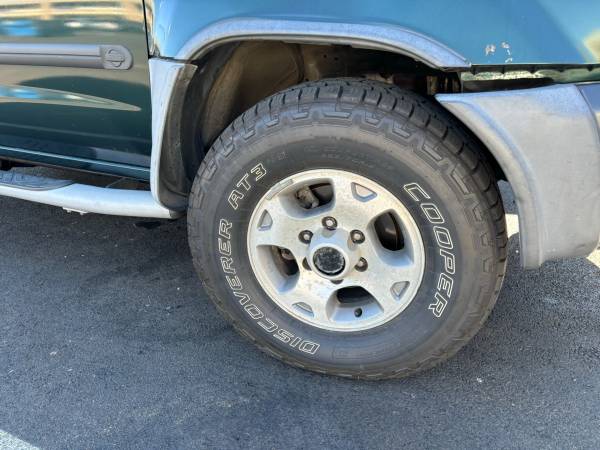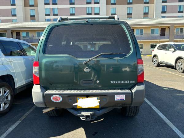 2000 Nissan Xterra 4x4 for sale. Great off-road rig. About 130,000 miles. All fluids changed recently. All-terrain tires with only about 4000 miles on them. New touch screen radio with wireless apple car play. Backup camera. A/C just recharged and ice cold. Dent in the front right fender. Runs and drives great. Asking 2.5k or best offer.