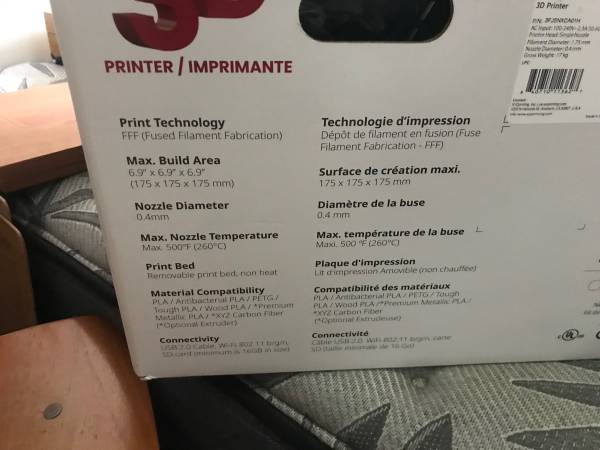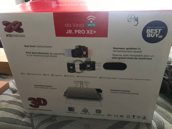 De Vinci pro jr XE+ 3D printer. Brand new in the box. Unused never been out of the box. Selling as is. No refund Please check pictures. Used Lenox operating sister. Wyfy