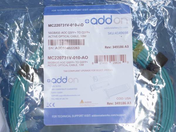 AddOn 10m Mellanox Compatible QSFP+ AOC - Network cable - QSFP+ to QSFP+ - 10 m - fiber optic - active New see photos Have a few available