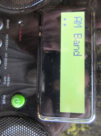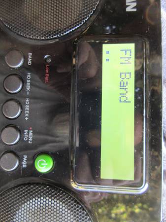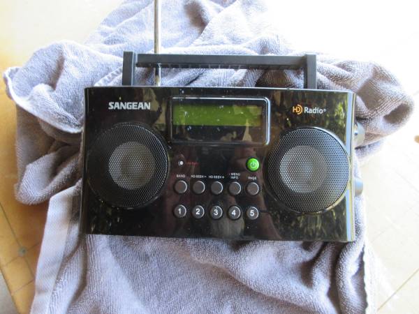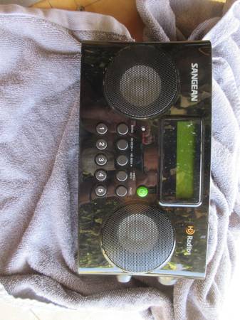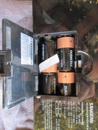 Cleaning out the garage Sangean radio with multiple bands and weather etc. Has four new batteries. Don't be caught helpless when the power goes out. Stay connected with reliable top brand radio....