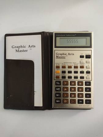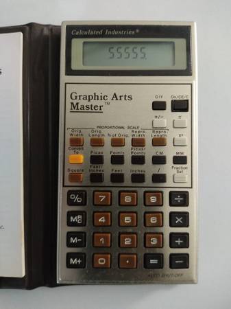 I have a: Graphic Arts Masters Calculator By Calculated Industries 1988 Edition For Sale If interested, please text me at: If interested, please text me at: (Three 2 Three) 8 zero 2 - 4 nine 2 nine.