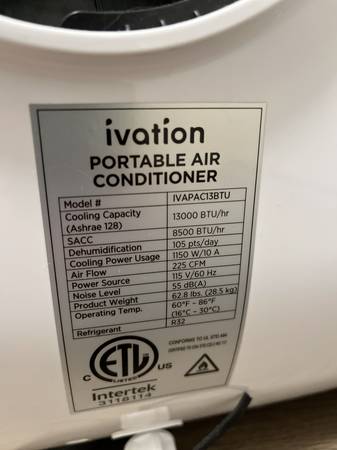 Ivation brand 13K BTU portable AC unit/dehumidifier with remote, piping, window mount, and manual for rooms up to 500 sq feet. Works great, only used for one season (moved into a place with forced air shortly after purchasing, otherwise I'd still use it). $200 OBO, pickup only in Los Feliz.