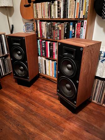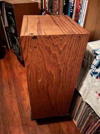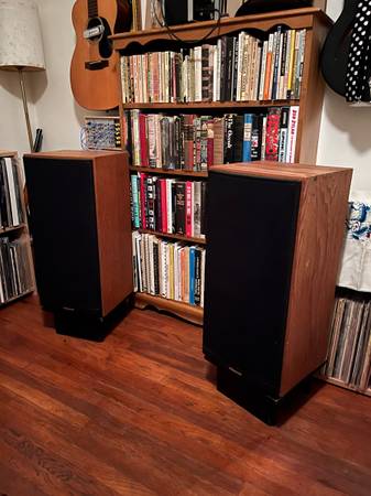 Working great. No problems with the sound or the speakers. Good condition. Some wear on the cabinets, see pictures.
