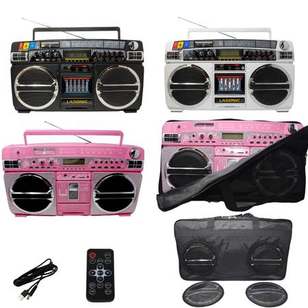 Bring back the iconic vibe of the '80s with the Lasonic i-931BT Classic Retro Bluetooth Boombox — a perfect blend of vintage style and modern features. Available in bold Black, crisp White, or vibrant Pink, this boombox delivers powerful sound with wireless Bluetooth streaming, AM/FM/RBDS radio, and a built-in equalizer for custom audio control. With 40 preset stations, USB and Micro SD slots, aux input, and a headphone jack, it's designed for maximum versatility and convenience. Whether you're at home, at a party, or on the go, the Lasonic i-931BT brings timeless style and rich sound wherever you take it.