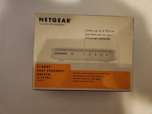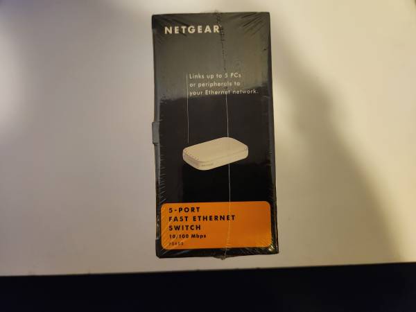 Netgear 5 port ethernet switch 10/100 Mbps, FS605, Sealed. Never been used. Cash or PayPal accepted. Local pickup Hollywood/ Los Angeles area or I can ship for a fee.