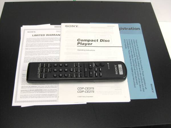 For Sale Used Sony CDP-CE375 - 5 Disc CD Player Changer Carousel. Works Fine. In Very Good Condition. Comes with Original Remote Control and Manual. Only What's Pictured. Nothing Else Is Included In...