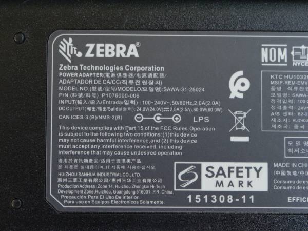 Zebra Genuine SAWA-31-25024 / P1086000-006 60w 24v 2.5a AC Adapter Power Supply Used good shape. Power cable included. Price for 1x. Have a few available.