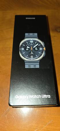 Hello friends, for your consideration is a Samsung watch ultra titanium silver Bluetooth LTE edition. It is unlocked for any carrier. Open box new condition and never been activated. Please Google for technical specifications. Watch comes with grey Maine band. Text Mike at 323 788 zero 4 three 8.