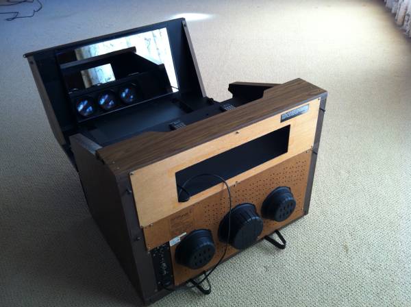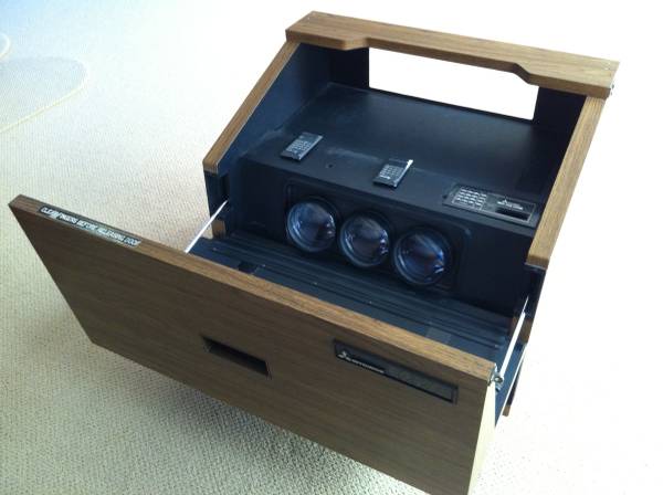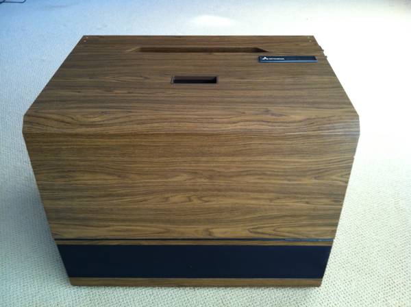 1979 Mitsubishi Tricolor Projection Television VS-506U. This analog 1970's TV is in flawless cosmetic condition. It would make a perfect non-functional stage or set prop as it is. Modified to play old video footage it could be quite valuable.