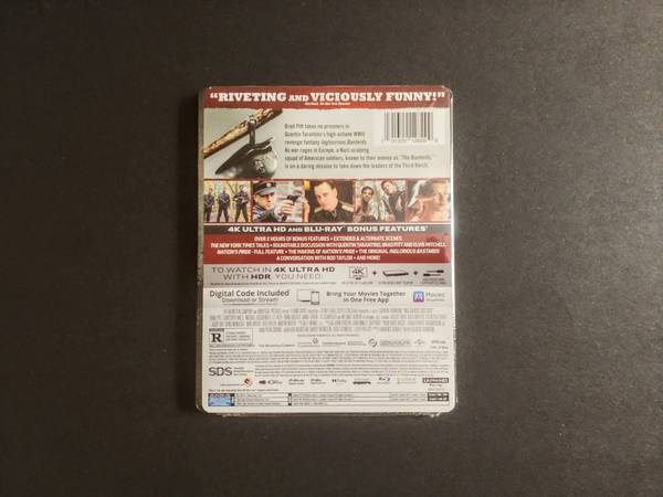 The product is a rare and collectible Steelbook Collector's Edition of the movie "Inglourious Basterds" in 4K UHD Blu-ray format. Directed by Quentin Tarantino and starring Brad Pitt and Christoph Waltz, this war drama film set in World War II is presented in a Blu-ray region-free format. This limited edition release from Universal includes bonus features and is a must-have for fans of war dramas.