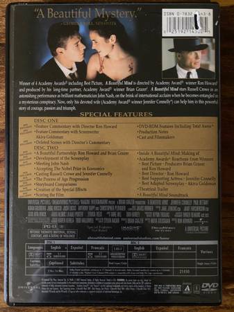 A Beautiful Mind (DVD, 2002, 2-Disc Set, Limited Edition Packaging Widescreen, Awards Edition), Used Like New!