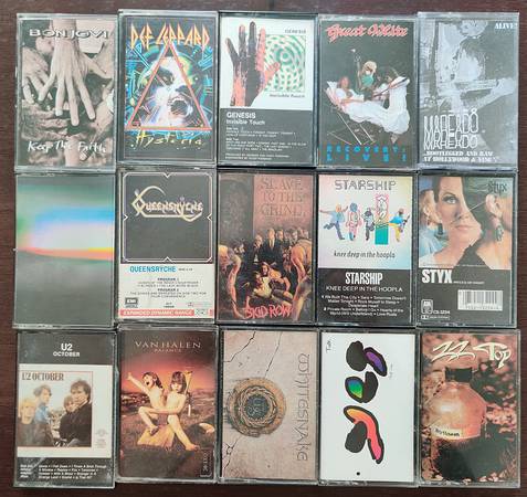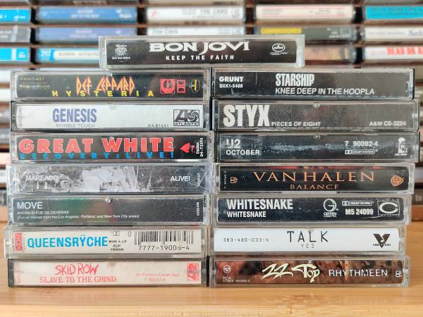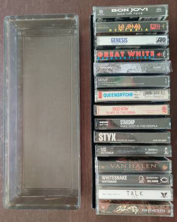 Great rock lot from personal collection. All tested – all have pressure pads, with conditions ranging from good to near mint to factory sealed. Free travel case for purchases of 10 or more tapes.