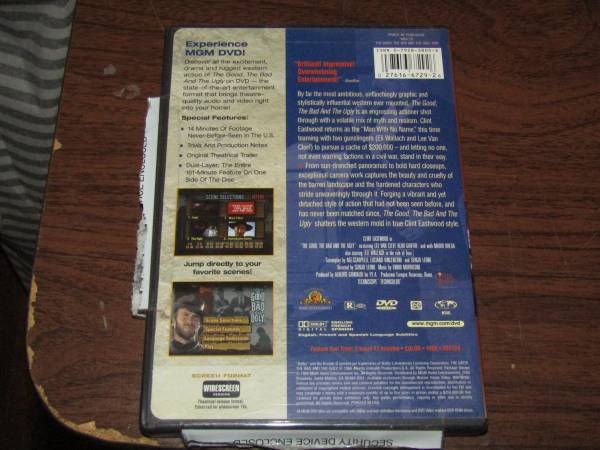 Clint Eastwood (the Man with No Name) is good, Lee Van Cleef (Angel Eyes Sentenza) is bad, and Eli Wallach (Tuco Benedito Pacifico Juan Maria Ramirez) is ugly in the final chapter of Sergio Leone's trilogy of spaghetti westerns (the first two were A Fistful of Dollars and For a Few Dollars More). In this sweeping film, the characters form treacherous alliances in a ruthless quest for Confederate gold. Leone is sometimes underrated as a director, but the excellent resolution on this digital video disc should enhance appreciation of his considerable photographic talent and gorgeous widescreen compositions. Ennio Morricone's jokey score is justifiably famous.