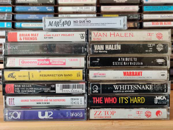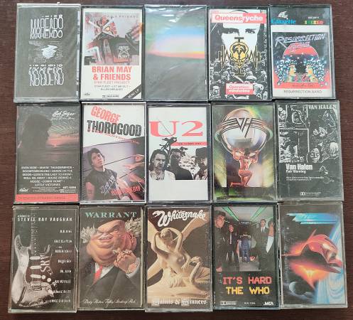 Rockin lot from personal collection. All tested – all have pressure pads, with conditions ranging from good to near mint to factory sealed. Free travel case for purchases of 10 or more tapes.