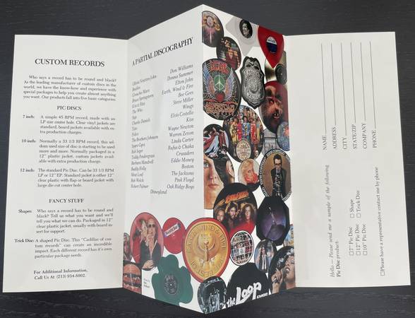 Pic Disc, formerly based in LA, created a promotional album for Atlanta's 94-Q The Music FM radio station. The album is Robert Palmer's Secrets. It has his image on one side and pictures of the radio station DJs on the other. In addition, there is a letter to the station and a Pic Disc marketing brochure - interesting memorabilia with a connection to LA.