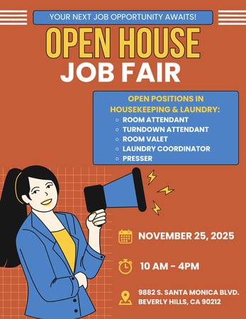 Housekeeping Job Fair at The Peninsula Beverly Hills on Tuesday, November 25th, from 10 AM to 4 PM!