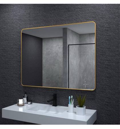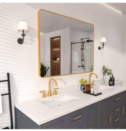 48 in. W x 36 in. H Rectangular Framed Wall Bathroom Vanity Mirror in Brass