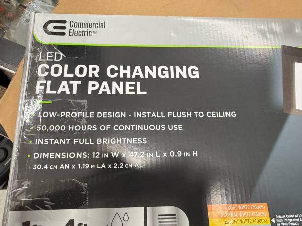 Open box Model: 9141 Uses 50 watt Brightness : 4000 Lumens Flush mount ceiling installation • Color selectable light appearance: 3000K/3500K/4000K/5000K/6500K (soft white/neutral white/bright...