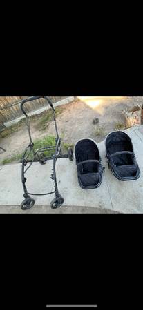 CONTOUR ELITE TANDEM DOUBLE STROLLER EAZY OPEN/close seats easily come off Has large storage basket underneath FIRM PRICE IN EAGLE ROCK Text