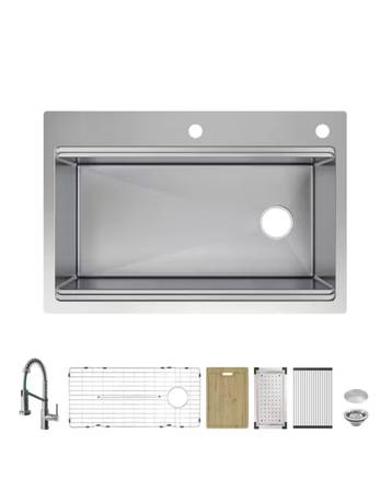 Dolancourt Tight Radius 33 in. Drop-In Single Bowl 18G Stainless Steel Workstation Kitchen Sink with Spring Neck Faucet