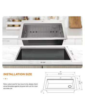 Including bamboo cutting board, 304-stainless steel colander, 304-stainless-steel dish-drying roll-up rack, 304-stainless steel bottom grid, drain, drain strainer, strainer cover, and top mount mounting hardware