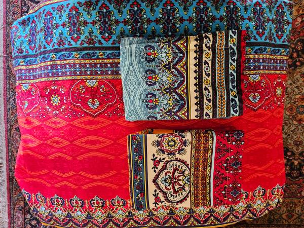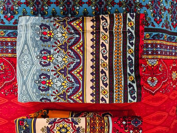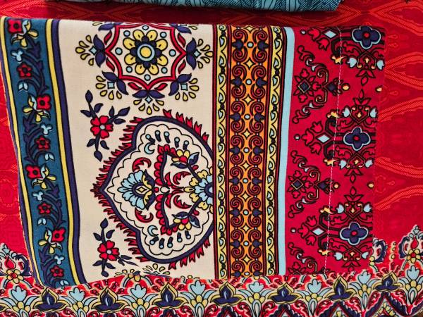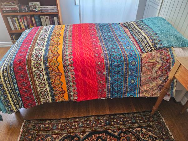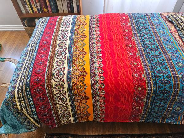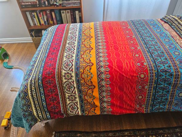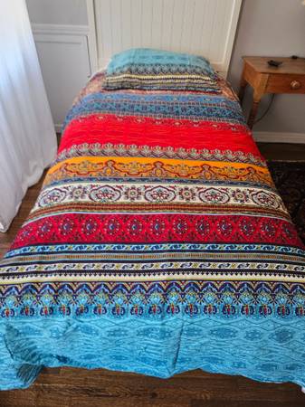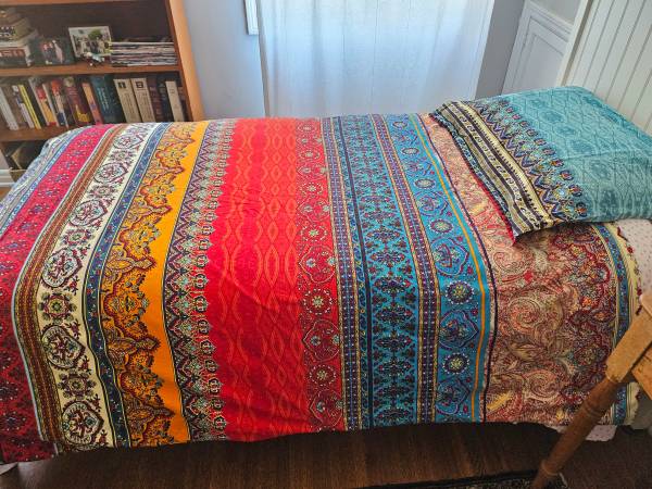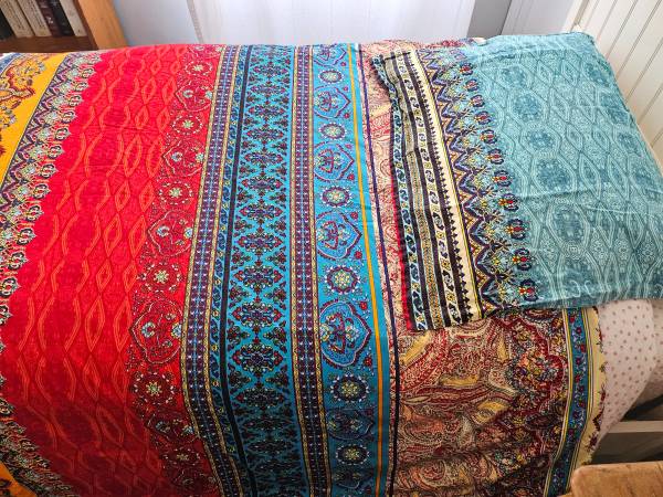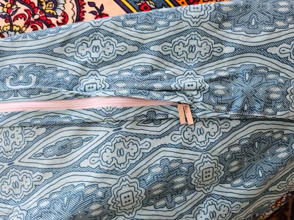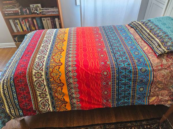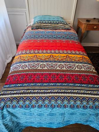 Beautiful, brushed cotton duvet covers (2) and pillow covers (4) for twin beds. Used once for a photo shoot. Zipper opening. Covers are reversible (as are pillow cases).