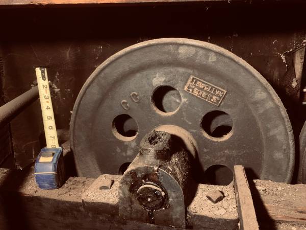 1906 elevator sheaves. Large and heavy. Made by Lewellyn Works, used by Otis Elevator. Cool looking and still serviceable. 99$ ea. You remove. Excellent for steam punk decoration. Adds early...