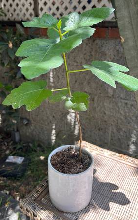Healthy about over foot height fig tree, probably green kind. In strong white stoneware pot. Looking for sunny new place. No texting, No Venmo, cash only. CL emails work fine, sometimes check your...