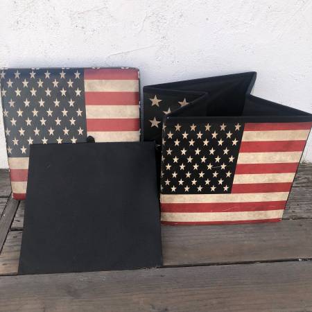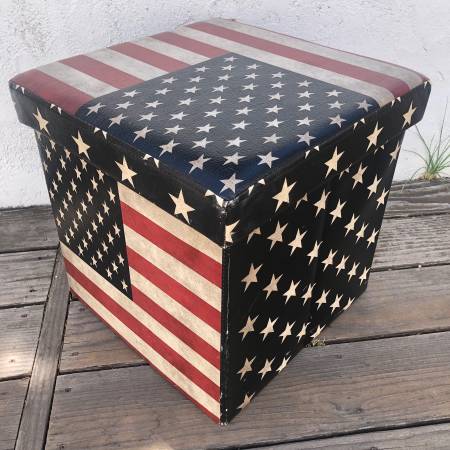 Foldable USA Flag Small Ottoman Storage Seat Box (Silver Lake) -...