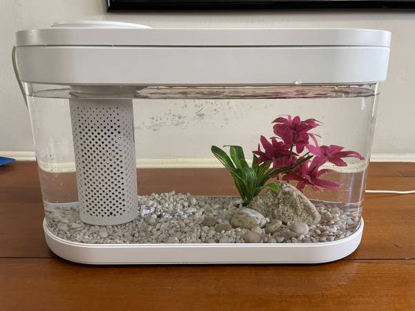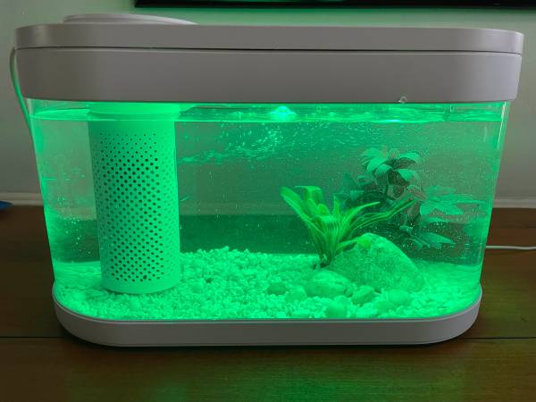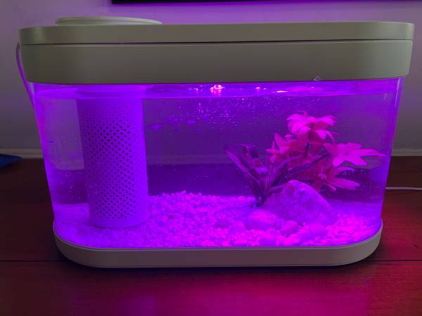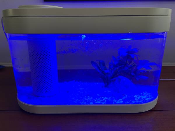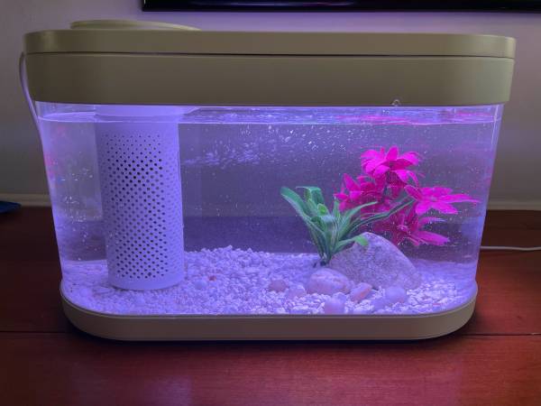 2 gallon fish tank/aquarium 15" long - 9" high - 6.5" width USB outlet Multiple light settings Interior filter Half a jar of betta food Half a jar of Bettafix medicine A jar of white substrate 2...