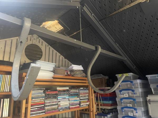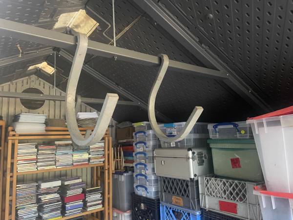 Heavy duty hooks for hanging from poles or rafters $20 each, There are eight. 1" thick 13" hanging from top to bottom point