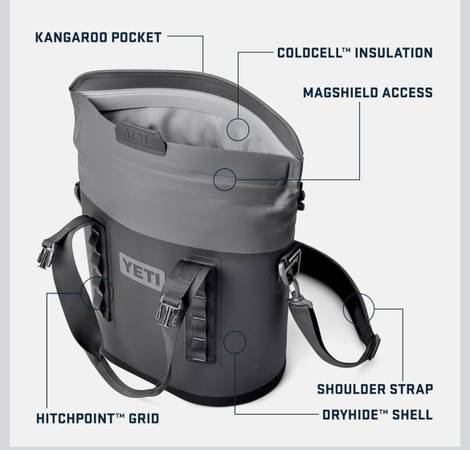 Brand new. Charcoal color. MSRP $300 + tax Size: 20.3"W x 9.2"D x 16.0"H Fits 32 cans (only) Fits 15 lbs of ice (only) Wine bottle compatible