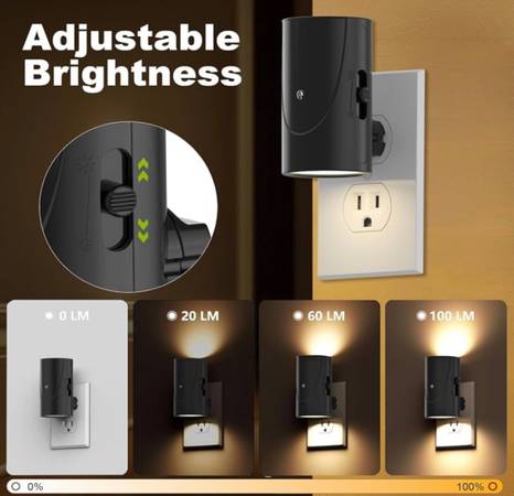 NEW*ππ»2x LED Dimmable Night Lights Sensor Adjustable Brightness Soft...