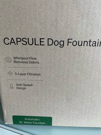 Brand new in box Petlibro “Capsule” filtered water fountain for medium to large dogs, plus 4 brand name water filters. Dimensions and details:...