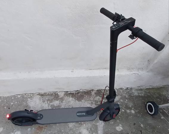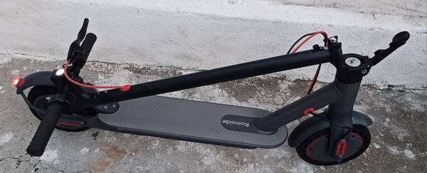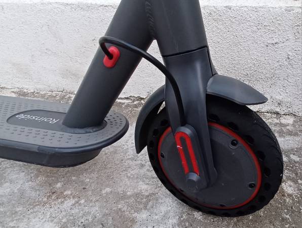 The Roinside Electric Scooter 8.5" Solid Tires, 350w Motor, Up to 19 Mph and 21 Miles Long-range Portable Foldable Commuting Scooter for Adults with Double is a foldable electric scooter that can reach speeds of up to 19 mph and has a range of 21 miles. It has a 323wh battery that can be recharged in about four hours. The scooter is designed for adults and has passed the Ul2272