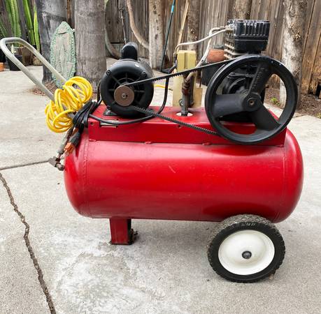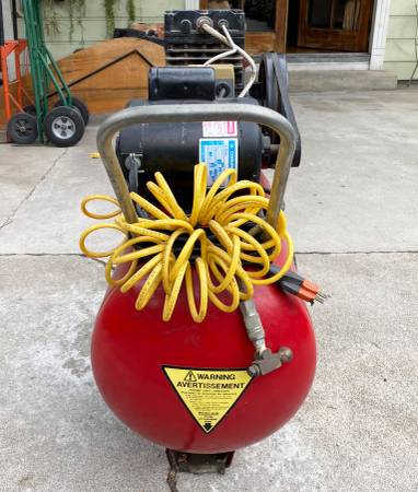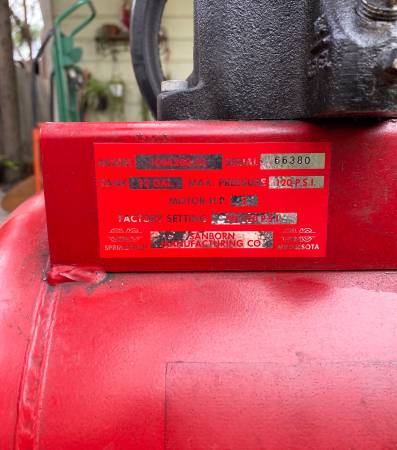Used Sanborn Air Compressor 2 HP Electric Motor Model 104A200-22 2 hp electric motor 22 gallon tank 120psi Air hose included Runs good.