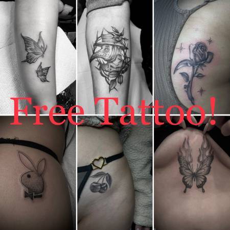 Free tattoo up to 2” by 2” *** Must have a Google account or yelp account **I’m only doing black ink, no color **No cover ups, No neck, no face, no fingers. **Design must be very minimal in detail....